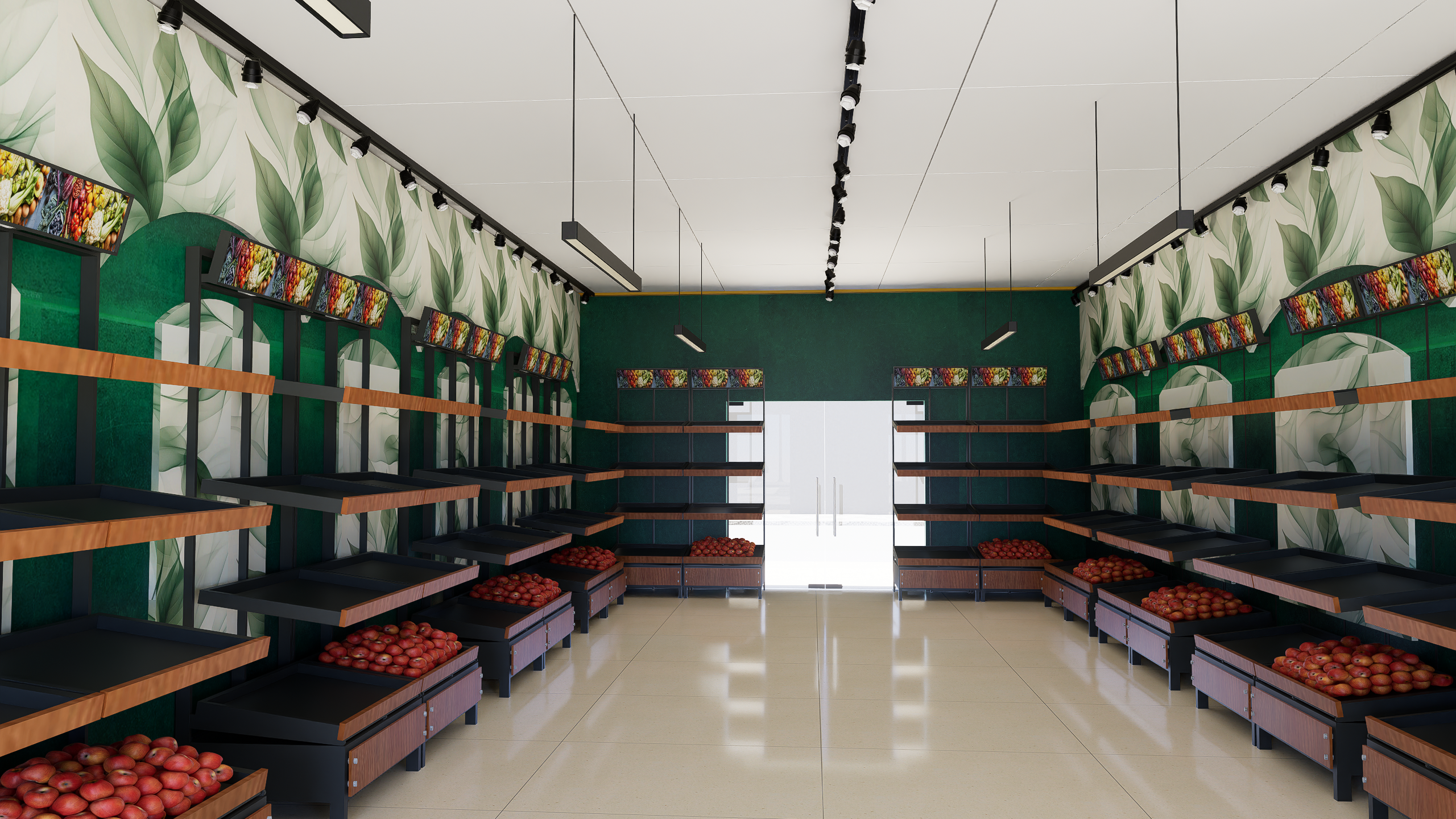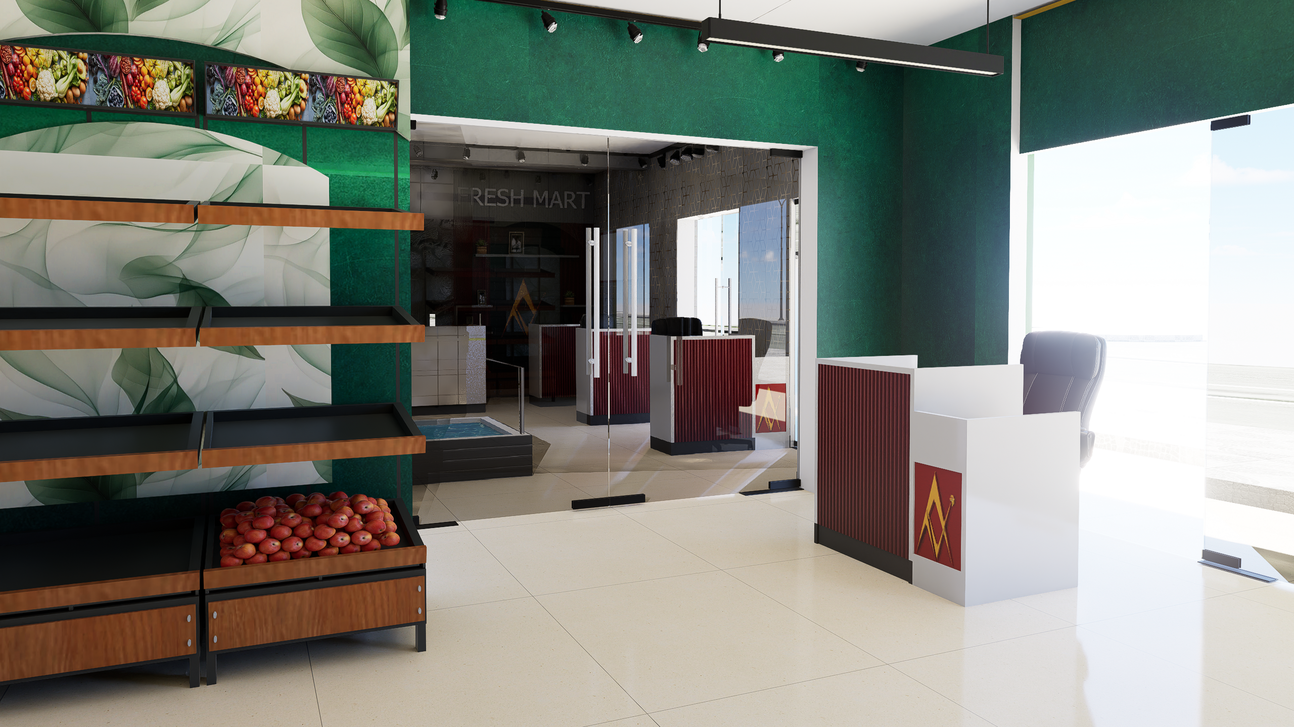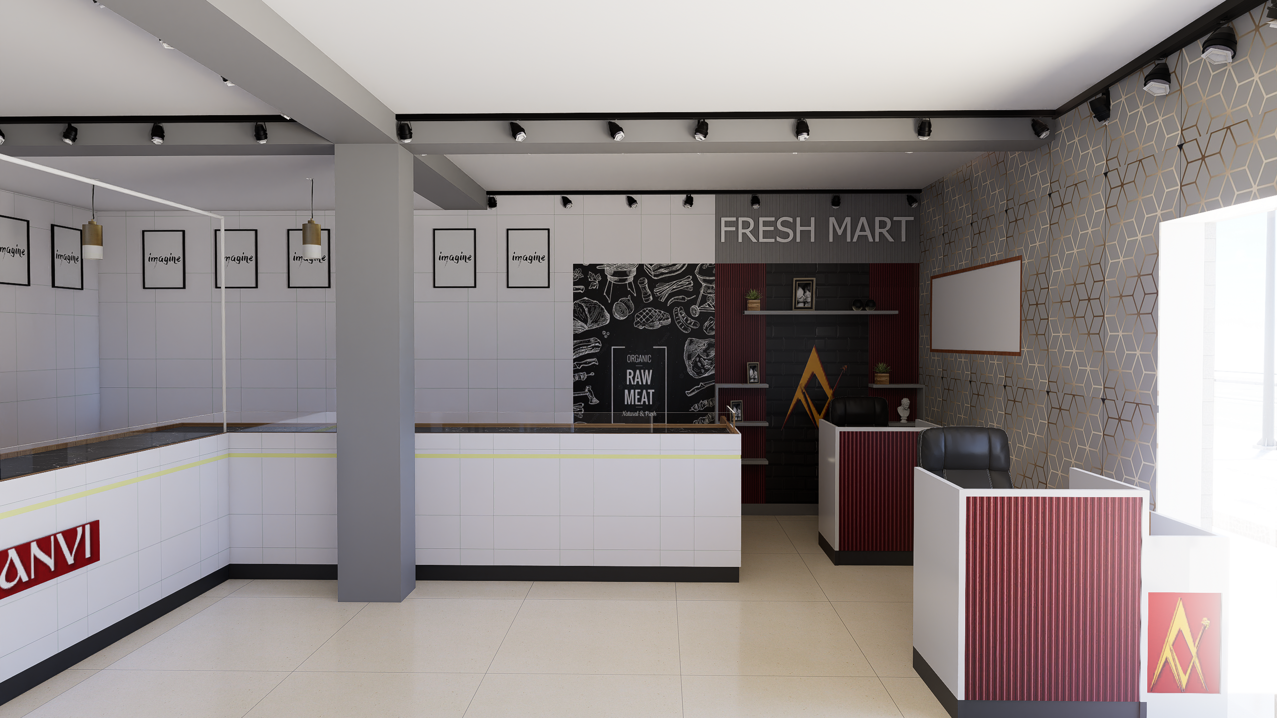 Anvi Fresh Mart is designed to create a fresh, hygienic, and inviting environment for customers while ensuring smooth operational workflow for staff. The design merges modern aesthetics with functional efficiency, making the mart not only visually appealing but also practical for daily operations.